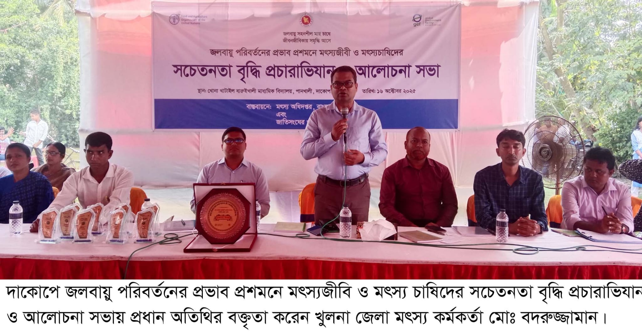 খুলনার দাকোপে মৎস্য চাষিদের সচেতনতায় প্রচারাভিযান সভা